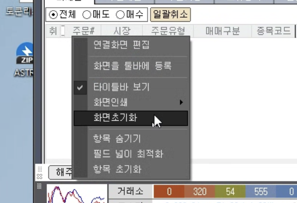 주문 취소 기능은 해외주식주문창 미체결 탭에서 이루어지게 되는데 화면 구성이 변경된 경우에 주문 취소 기능이 제대로 동작 안하는 경우가 있습니다.